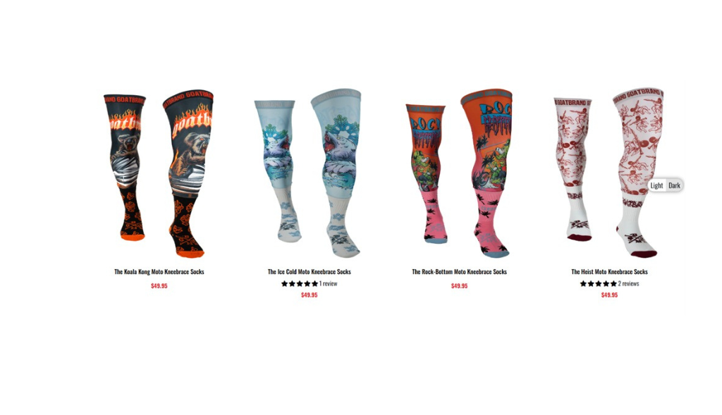 While brands like Fox Racing, Alpinestars, and Leatt offer quality motocross gear, Goat Brand MX provides some of the top motocross knee brace socks specifically designed for riders who use knee protection.